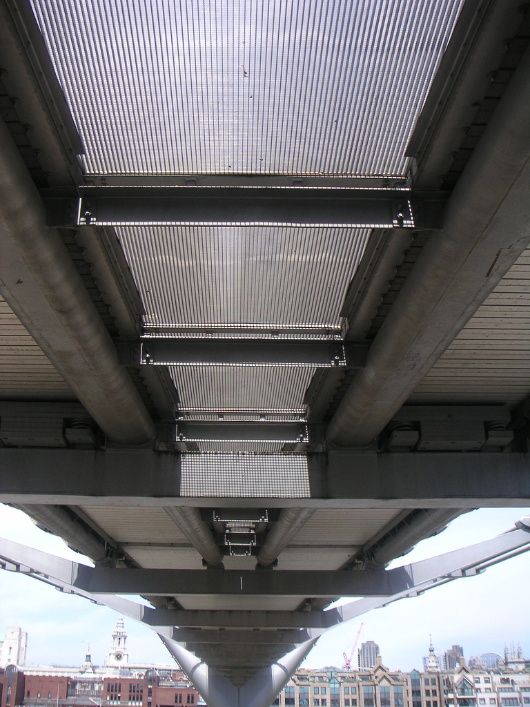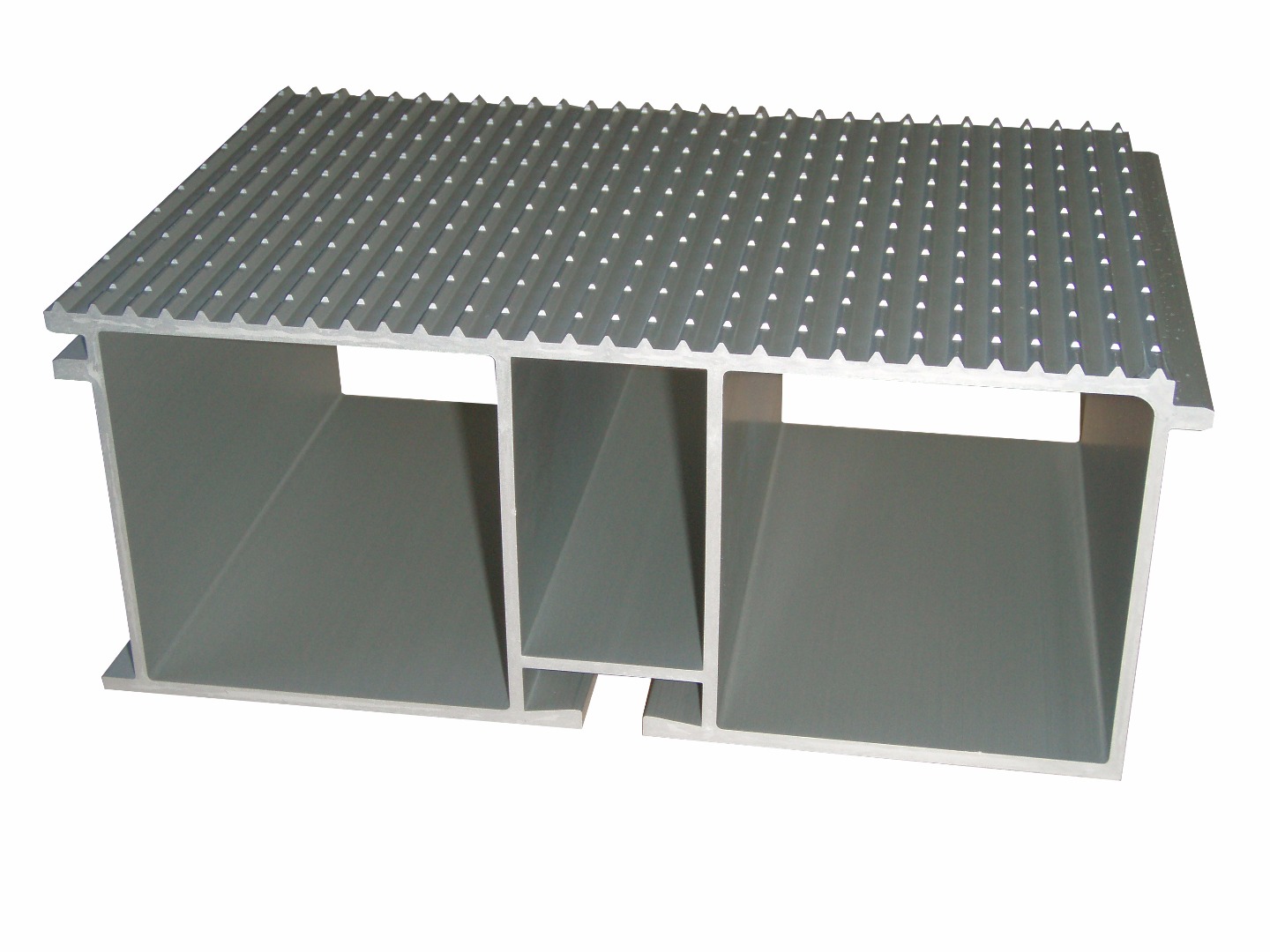 Pochůzná část mostu je vytvořena z 200 mm širokých lisovaných hliníkových mostních profilů ve tvaru trubek.