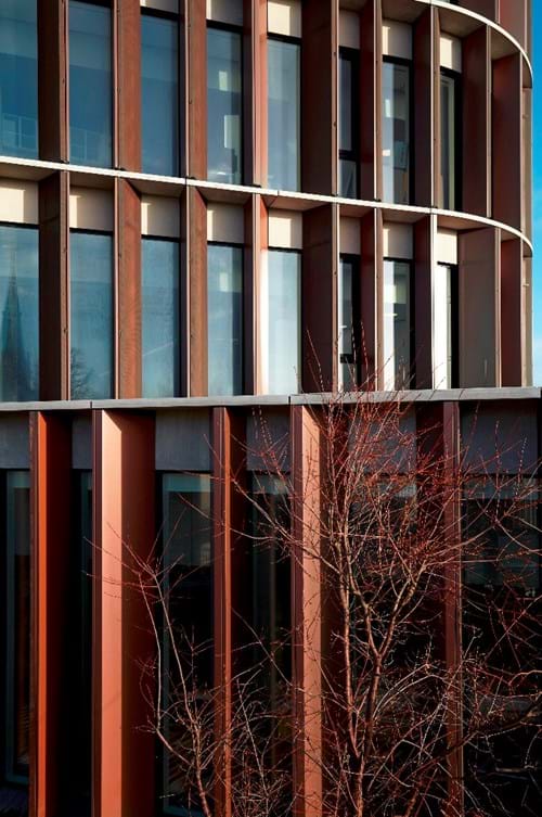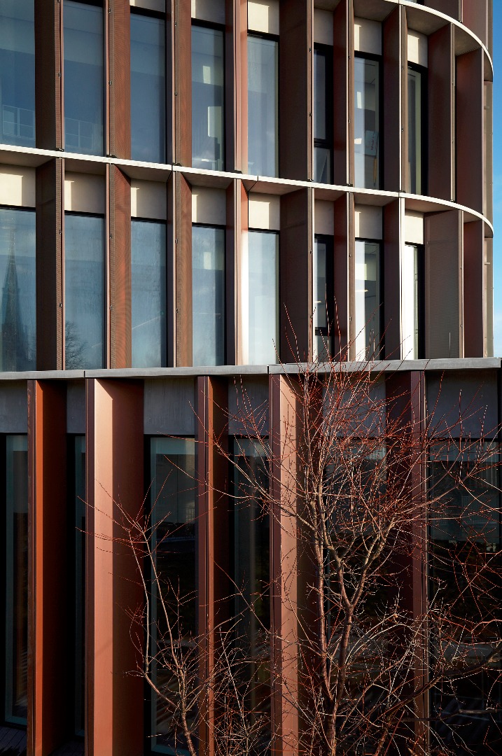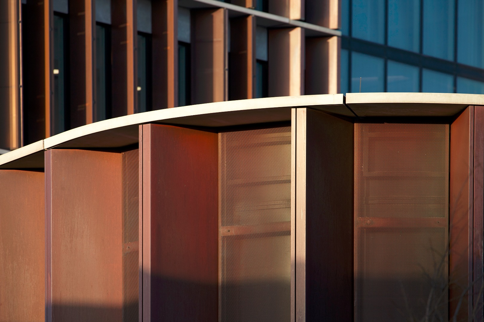 Po instalaci má materiál zlatou barvu, ale časem získává tmavší patinu – což jen zvýrazní tvarování materiálu. Použitý kov elegantně dotváří architektonický tvar budovy, takže je zaručeno, že i v budoucnu bude Panum považováno za estetickou perlu.