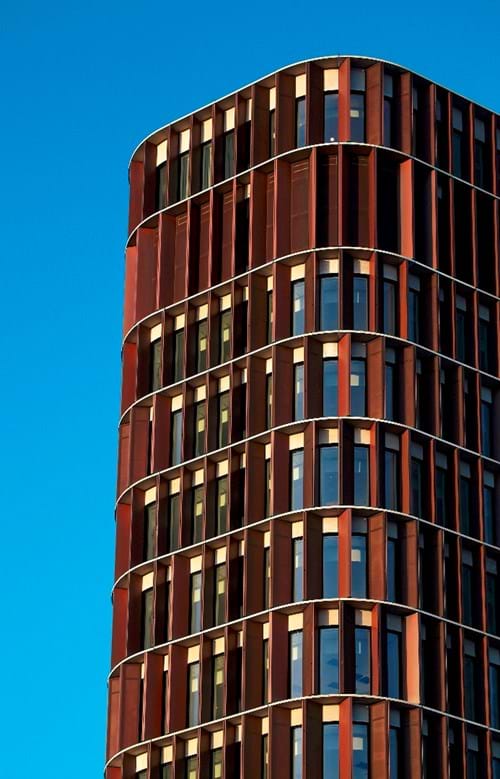 Fasáda budovy Maersk Tower, univerzita v Kodani